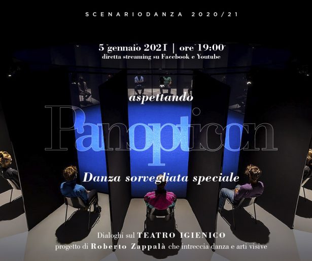Danza sorvegliata speciale Aspettando Panopticon è un incontro che avverrà online il 5 gennaio 2021 alle 19.00. Una riflessione non obbligatoriamente pensata in funzione del Covid-19, ma che ne prende spunto per una più profonda analisi sulla condizione dell’individuo messo a dura prova e sempre morbosamente controllato.Come suggerisce il titolo Aspettando Panocticonè una serata per presentare il progetto Panocticon, ideato nel maggio 2020 da Roberto Zappalà, pensato e realizzato insieme al visual designer Maurizio Leonardi: una miscela di esperienze agite, arte concettuale e fisica e necessità del presente.