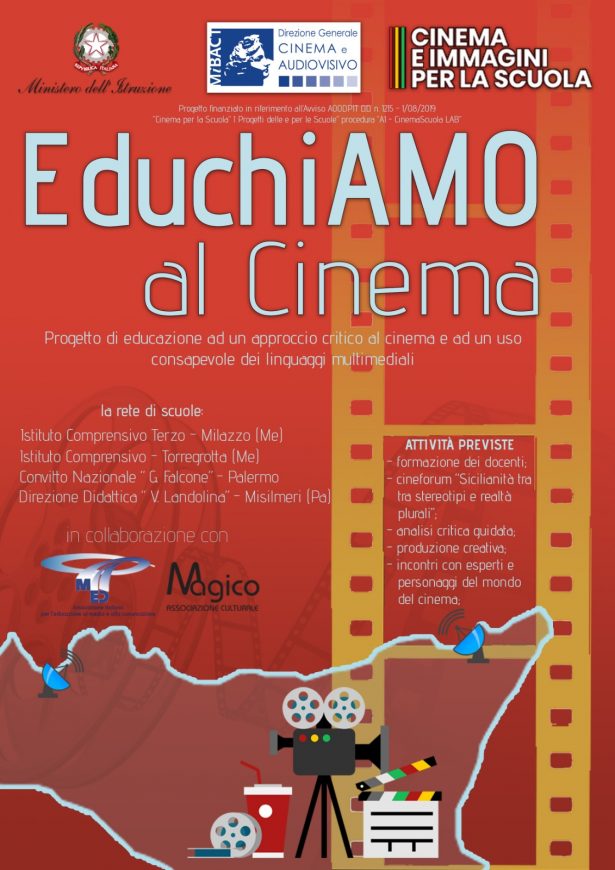 Ai nastri di partenza il progetto EduchiAMO al Cinema, nell'ambito del “Piano nazionale del cinema per la scuola” promosso dal Miur e dal Mibac e presentato dall'Istituto Comprensivo Terzo di Milazzo in qualità di Ente capofila “Cinema per la Scuola“ sezione "I Progetti delle e per le Scuole”, realizzato in rete con l'Istituto Comprensivo di Torregrotta, il Convitto Nazionale “Giovanni Falcone” di Palermo e la Direzione Didattica II Circolo V. Landolina di Misilmeri (Pa) e in collaborazione con l'associazione MED (Associazione Italiana per l'Educazione ai Media e alla Comunicazione) e con l'Associazione Magico di Milazzo.