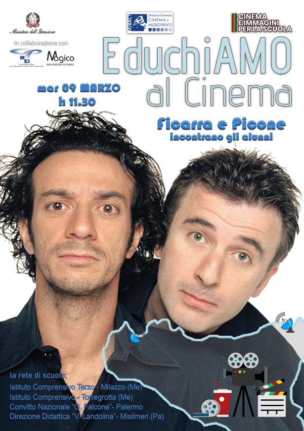 Il 9 marzo 2021 alle ore 11, 30 con l’atteso incontro on line tra gli attori Salvatore Ficarra e Valentino Picone e i docenti e gli alunni delle quattro realtà scolastiche siciliane in rete si aggiunge una tappa importante alla prima fase del progetto EduchiAmo al Cinema dedicata alla formazione dei docenti.