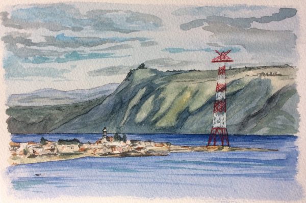 Marta Cannata (Messina, 2002) “Stretto di Messina, Punta Faro e la costa calabra” 2020 – acquarelli su carta, cm 14 x 21