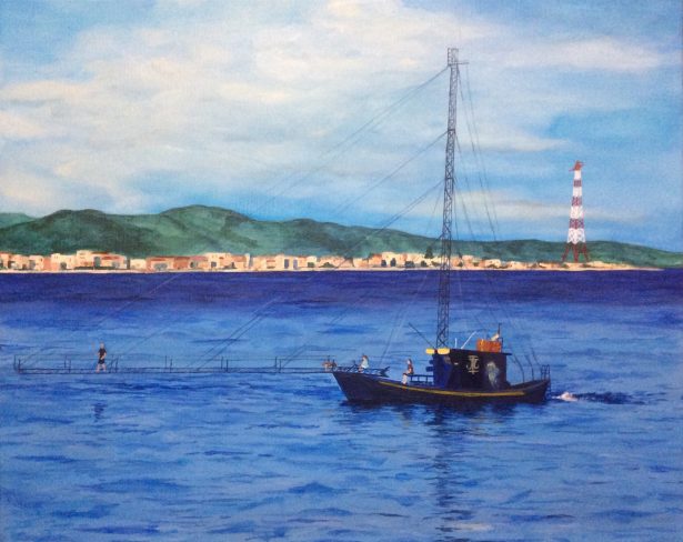Marta Cannata (Messina 2002) "Feluca nello Stretto" 2021 - acrilici su tela, cm 50 x 60