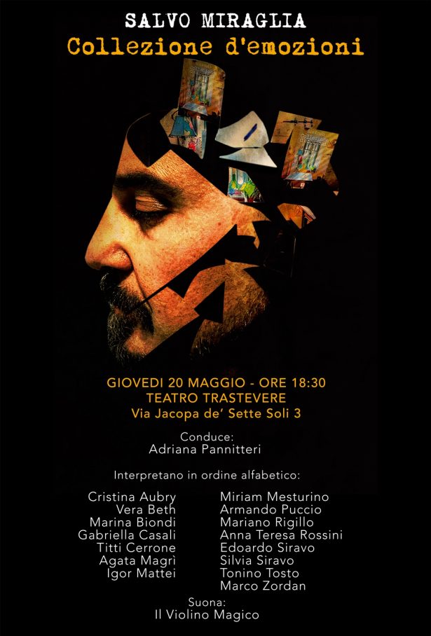 Giovedì 20 maggio alle ore 18.30 il Teatro Trastevere a Roma ha il piacere di ospitare la messa in scena del Romanzo di Salvo Miraglia: “Collezione d’emozioni”