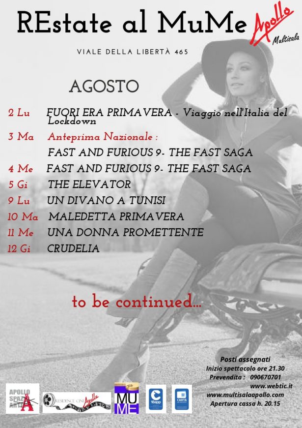 Cinema, teatro e musica sotto le stelle nello scenario unico del Museo regionale di Messina: ecco “REstate al MuMe” fino al mese di settembre, alle 21.30 con apertura cassa alle 20.30, con posti assegnati all’aperto e in sicurezza. Una rassegna che ha registrato in questo periodo una significativa partecipazione del pubblico, con diversi sold out, realizzata da una serie di realtà costituite in Ats – Associazione temporanea di scopo in un luogo speciale grazie al Museo e al suo direttore Orazio Micali: l’Apollo srl (con capofila Fabrizio La Scala), l’Accademia Filarmonica, la Filarmonica Laudamo, i Nutrimenti Terrestri e il Teatro dei 3 Mestieri, in collaborazione con Apollo Spazio Arte di Loredana Polizzi.