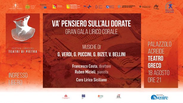 Nell'incantevole scenario del Teatro greco di Palazzolo Acreide, definito dal grecista e letterato Ettore Romagnoli "il teatro del cielo" per il particolare effetto di sospensione che regala al visitatore e per la straordinaria vista sulla Valle dell’Anapo e all'orizzonte imponente sull'Etna, le voci del Coro Lirico Siciliano, accompagnate dal valido Ruben Micieli, faranno rivivere le passioni, le grandi emozioni, le suggestioni e i sentimenti delle più commoventi e struggenti pagine dei compositori italiani e non. La serata prevederà anche un omaggio alla Canzone Italiana e proporrà anche alcune tra le più frizzanti pagine del repertorio operettistico.