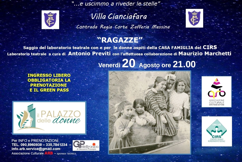Venerdì 20 agosto alle ore 21.00 nell'ambito del cartellone estivo "...e uscimmo a riveder le stelle" dell'associazione culturale ARB, in scena “RAGAZZE”, saggio del laboratorio teatrale a cura di Antonio Previti
