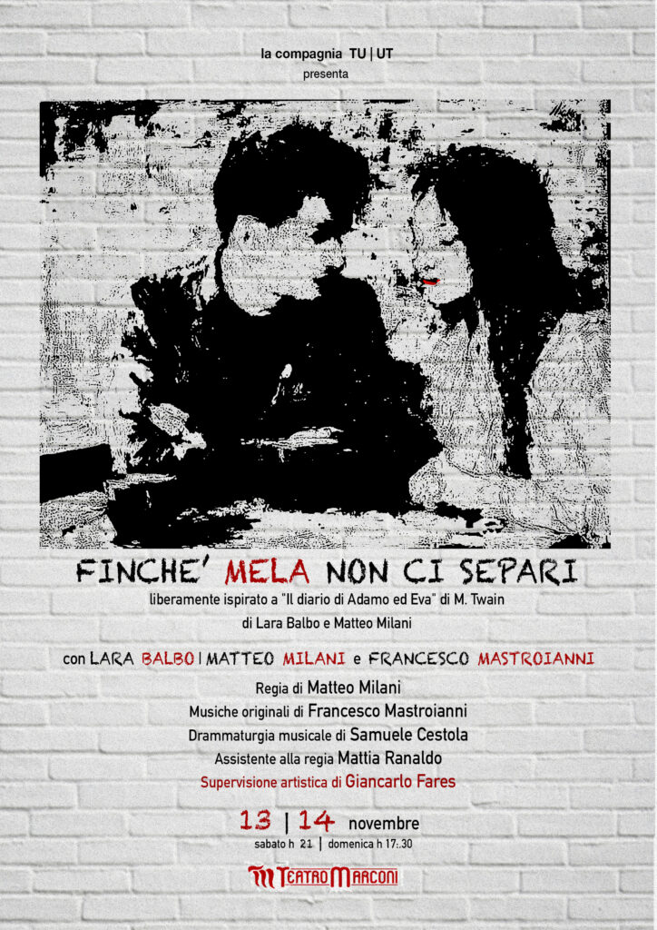 Debutta al Teatro Marconi di Roma il 13 e 14 novembre “Finché mela non ci separi – disquisizioni biologiche su differenti vedute amorose”, diretto e interpretato da Matteo Milani con Lara Balbo e Francesco Mastroianni.
