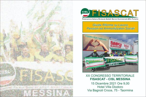 13 dicembre ’21 - Si terrà mercoledì mattina, con inizio alle 9.30, presso l’Hotel Villa Diodoro di Taormina, il XX Congresso provinciale della Fisascat Cisl di Messina.