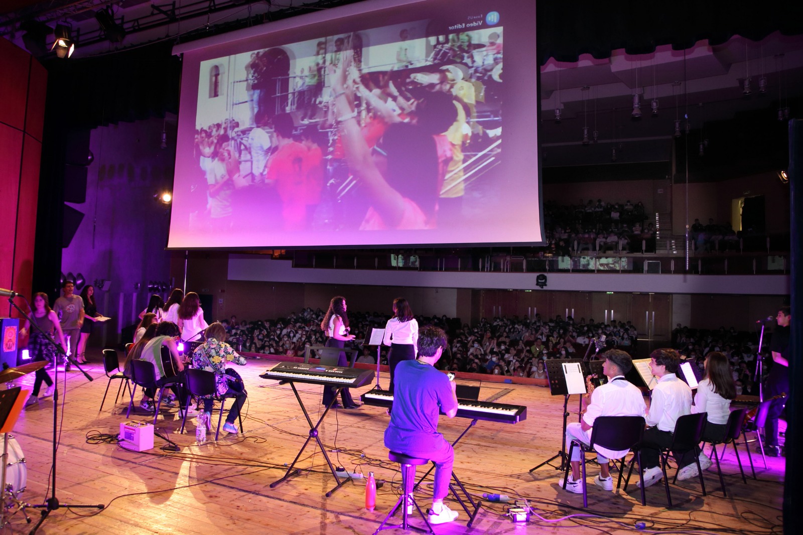 La seconda parte dello spettacolo è stata dedicata agli studenti del progetto Pon “Musica Maestro” con l’esibizione del gruppo “Seven hundred”, la band musicale coordinata dalla prof.ssa Cinzia Mendolia e dalla tutor prof.ssa Tania Marano, che ha rappresentato per il liceo Archimede il battesimo di una nuova realtà, quella musicale. Da questo progetto infatti ne è nata una vera e propria band: i “Seven Hundred”, ragazze e ragazzi di diverse classi e indirizzi. L’esibizione è stata superba perché i ragazzi hanno trasmesso con gli “strumenti”e con la voce il loro desiderio di stare insieme e la gioia di essere liberi dalla paura dei vincoli mentali e fisici in cui il Covid li aveva imprigionati. Tra i brani eseguiti: Musica Maestro di Raffaella Carrà, “Zombie” dei Cranberries, “People help the People” di Birdy, “Another Brick In The Wall” dei Pink Floyd, “Zitti e buoni” dei Maneskin, “Shallow” di Lady Gaga, “Dove si balla”di Dargen D’Amico, “Futuro”di Psicology, “Viva la Vida” dei Coldplay, “Controvento” di Arisa e ” 50 Special” dei Lunapop. Applausi scroscianti per i ragazzi della band capitanati dalla prof.ssa Mendolia quando hanno eseguito “Laura ora c’è”, versione rivisitata del brano di Nek, dedicata alla dirigente Laura Cappuccio.