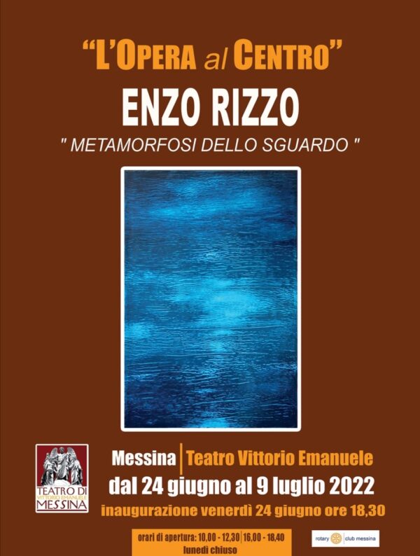 Alle ore 18,30 di Venerdì 24 Giugno nello spazio espositivo del Teatro Vittorio Emanuele di Messina nell’ambito del progetto “L’Opera al Centro”, curato da Giuseppe La Motta, verrà inaugurata la mostra di Enzo Rizzo "METAMORFOSI DELLO SGUARDO", con i testi di Anna Maimone e il patrocinio del Rotary Club di Messina.