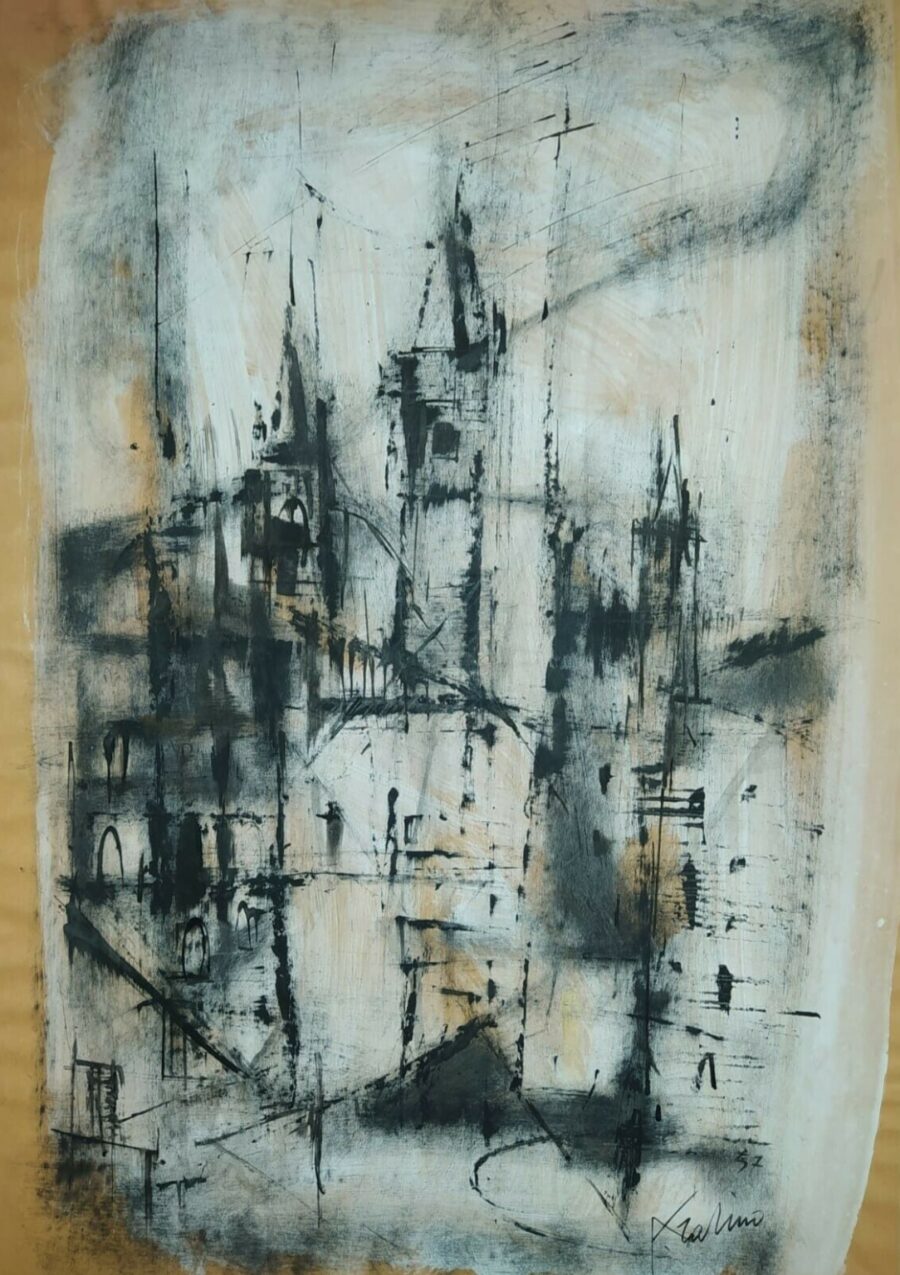 Piero Garino "Città" 1957 - tecnica mista su carta, cm 60 x 50