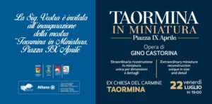 Undici anni per realizzare un sogno: mostrare ai tanti turisti presenti Piazza IX Aprile, cuore pulsante di Taormina in miniatura. In questi giorni il Maestro Gino Castorina sta montando la complessa opera all’ex Chiesa del Carmine. Sta lavorando notte e giorno per poter inaugurare la mostra il 22 luglio alle ore 19.00. Sta definendo gli ultimi dettagli i tavolini del Mocambo, del Wunderbar, le mattonelle della meravigliosa piazza, le lancette della torre dell’orologio, la montagna che la sovrasta e soprattutto i tanti figuranti che la rendono vera, vitale. A tal proposito non mancheranno tante sorprese. L’attesa è molta in città. D’altronde questo progetto unico -visitabile per oltre tre mesi dalle 10.00 alle 13.00 e dalle 16.00 alle 23.00- è un dono che l’artista poliedrico taorminese vuole fare alla sua terra natia ma anche e soprattutto ai turisti che sono tornati numerosi nella Perla dello Ionio. La mostra sarà arricchita da due pannelli esplicativi, uno che spiega il lungo lavoro (una gran mole di misurazioni sul campo, nonché progetti, calcoli e studio dei materiali da utilizzare per riprodurre financo il più infinitesimale dettaglio); l’altro che narra la storia della Piazza e le curiosità accadute in essa ad opera dell’architetto Piero Arrigo. Il pubblico inoltre potrà vedere l’evoluzione dell’opera grazie a delle fotografie che Gino Castorina ha scattato negli anni mentre realizza questa “colossale” miniatura, unica in Europa per dettagli e misure.