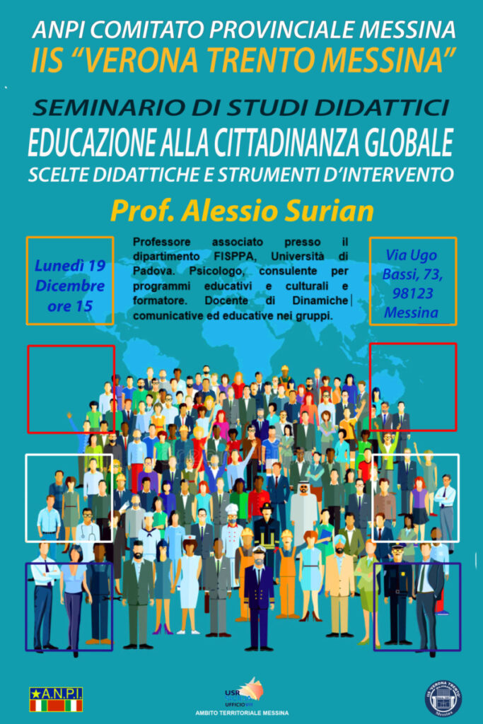Si svolgerà lunedì 19 dicembre 2022, alle ore 15,00, l'incontro con il Prof. Alessio Surian, presso l'IIS "Verona Trento" di Messina, in via Ugo Bassi, 73. Ad organizzare il seminario l'ANPI di Messina, l'USR di Messina e l'ISS "Verona Trento". Un'occasione di confronto rivolta principalmente ai docenti, ma aperta a studenti e pubblico interessato. La partecipazione al seminario è gratuita e ai docenti sarà rilasciato attestato di partecipazione.
