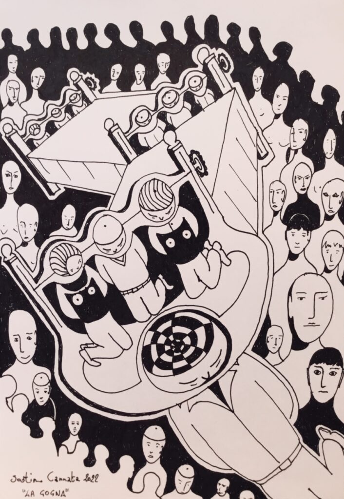 Sostine Cannata "La gogna" 2022 - china su carta, cm 29,7 x 21