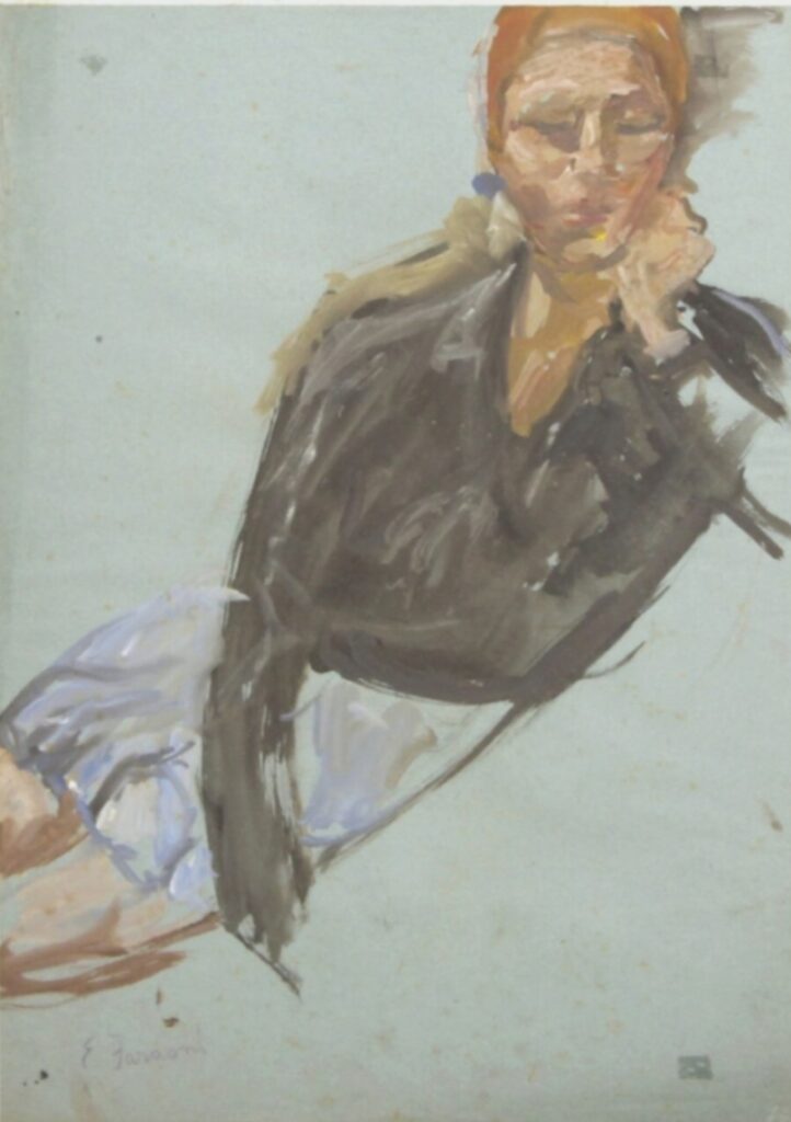 Enzo Faraoni "Figura femminile" - tempera su cartoncino, cm 66 x 47