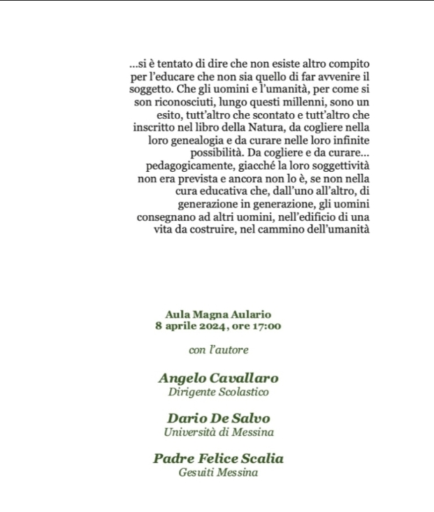 Messina. Presentazione del libro “Il lavoro dell’educare”