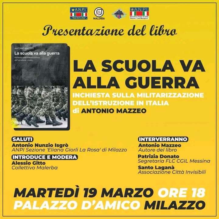 Oggi a Milazzo: presentazione del libro “La scuola va alla guerra”