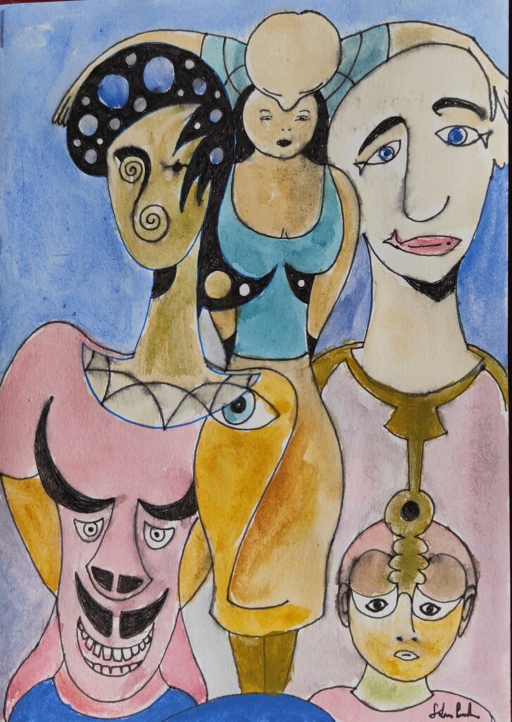 Sostine Cannata "Famiglia" 2024 - china e acquarelli su carta, cm 18 x 11