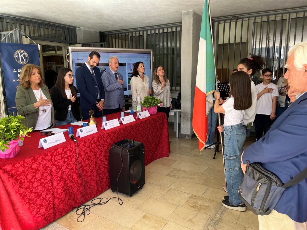E’ stato un pomeriggio di grande gioia e partecipazione quello che ha visto protagonisti gli alunni dell’I.C. “Manzoni – Dina e Clarenza” in occasione della cerimonia di consegna di un assegno al Centro Regionale Helen Keller per l’acquisto di un cucciolo di cane guida. Il progetto promosso dai ragazzi del Kiwanis Builders Club della scuola, presieduto dalla giovanissima Sofia Russo, è una delle tante iniziative sociali portate avanti dal club con l’obiettivo di promuovere opere benefiche in armonia con i compagni e i professori. Nella fattispecie, i fondi per l’acquisto del cucciolo sono stati il frutto della vendita di grembiuli da cucina in occasione della festa della mamma. E’ stata una cordata di solidarietà partita dagli alunni del gruppo Kiwanis e propagata anche al di fuori delle mura scolastiche grazie ad alcune associazioni che hanno sposato la causa, quali il Kiwanis Peloro (club sponsor), l’AMMI presieduto da Lilly Cuomo Cavallaro, l’UCSI con la presidente sezione Messina Laura Simoncini e il presidente regionale Domenico Interdonato e “I Fikissimi” presieduti da Massimo Pulitanò. Alla cerimonia erano presenti la dirigente scolastica della scuola Manzoni, Concetta Quattrocchi, il sindaco Federico Basile, il direttore del Centro Helen Keller Fabrizio Zingale, i vicepresidi Nadia Greco e Giacomo Gugliandolo, il past luogotenente governatore Divisione 1 dei due Mari-Valdemone Tonino Brancato, il presidente del Kiwanis Peloro Michele Minissale, le due vice presidenti del Kiwanis Builders Manzoni, Alma Dardanelli e Giada Mastronardo, le docenti referenti del Kiwanis Manzoni: Lina Salpietro (advisor Kiwanis Builders), Giusy La Fauci, Angela Abate, Grazia Spinella, Rosella Versaci e Letizia Lucca, numerosi docenti della scuola e i genitori degli alunni. E’ stata una cerimonia emozionante e suggestiva che ha visto anche la partecipazione del coro della scuola guidato dalla professoressa Giusy La Fauci, la spettacolare performance di “Body percussion” sotto la direzione della professoressa Cinzia Vasta e l’”Ensamble Manzoni” diretta dal prof. Tommaso Celona che ha eseguito l’inno nazionale e l’inno europeo. A conclusione della cerimonia, alcuni istruttori del centro Helen Keller hanno fatto un’esercitazione con i cani guida e hanno mostrato un cucciolo da poco arrivato al centro e affidato a una famiglia.
