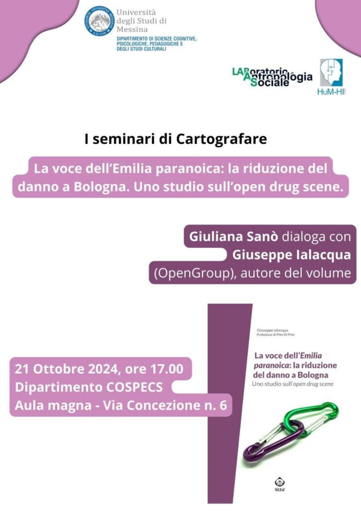 UniMe: presentazione del volume: “La voce dell’Emilia paranoica: la riduzione del danno a Bologna” di Giuseppe Ialacqua