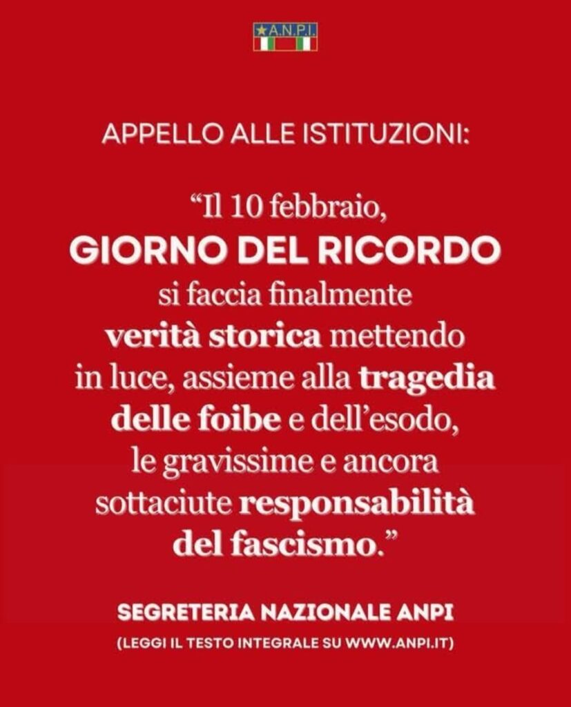 In merito alla proposta inviata al presidente del consiglio e al sindaco, da parte dei consiglieri comunali di Milazzo del gruppo 'Fratelli d'Italia', e del presidente territoriale di 'Gioventù nazionale', di intitolare un luogo della città a Norma Cossetto e a tutti i Martiri delle Foibe, la sezione ANPI 'Eliana Giorli La Rosa' di Milazzo esprime la sua netta contrarietà.