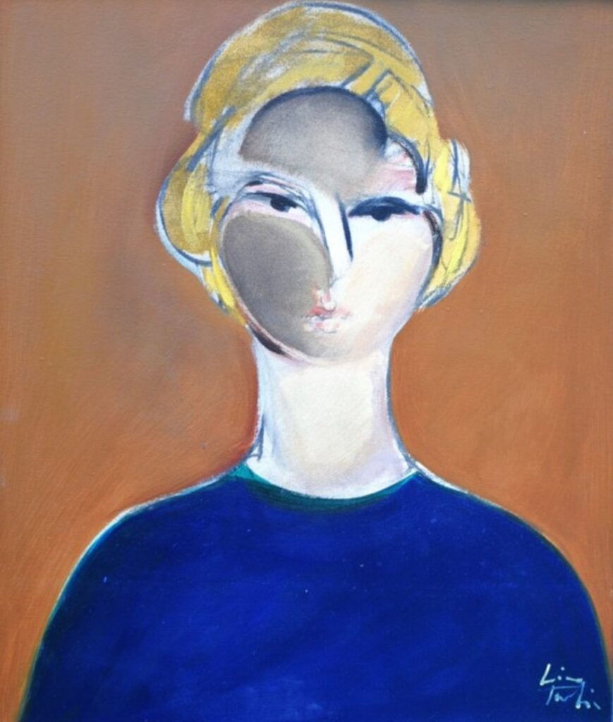 Lino Tardia "Donna in blu" 1970 - olio su tela, cm 60 x 50