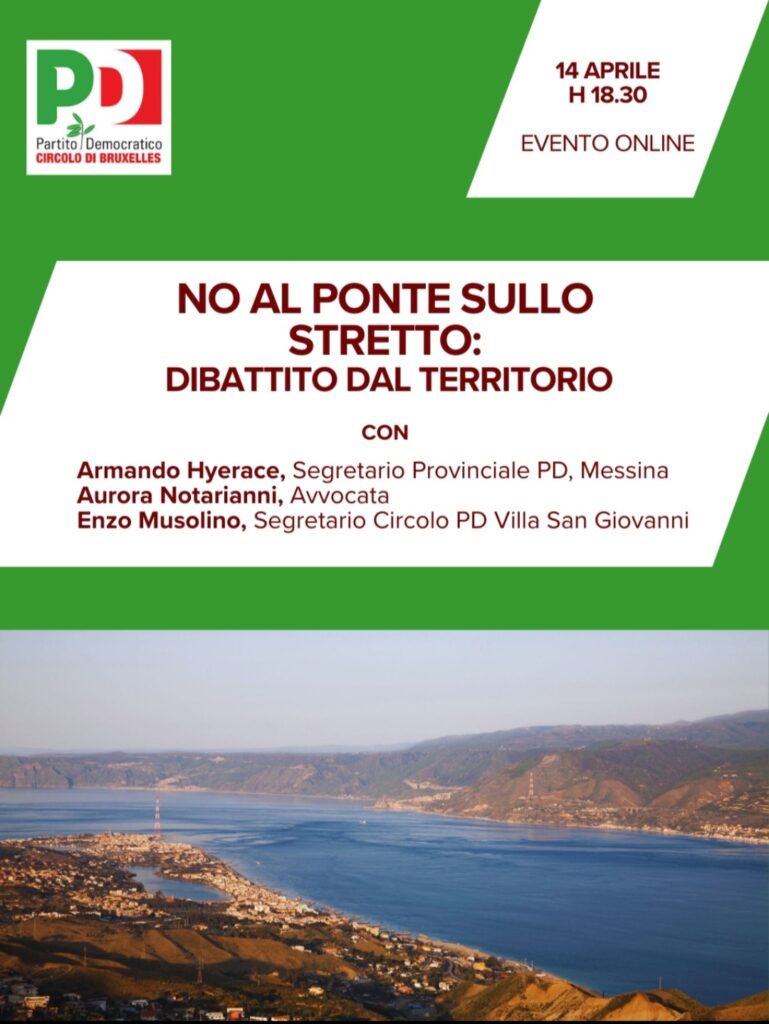 Domani 14 aprile 2025 alle 18.30 online il PD terrà un dibattito aperto sul futuro del ponte sullo con i compagni e le compagne del PD sul territorio e attivist* No ponte. L'incontro sarà online e si potrà partecipare connettendosi qui https://us02web.zoom.us/j/83788862021