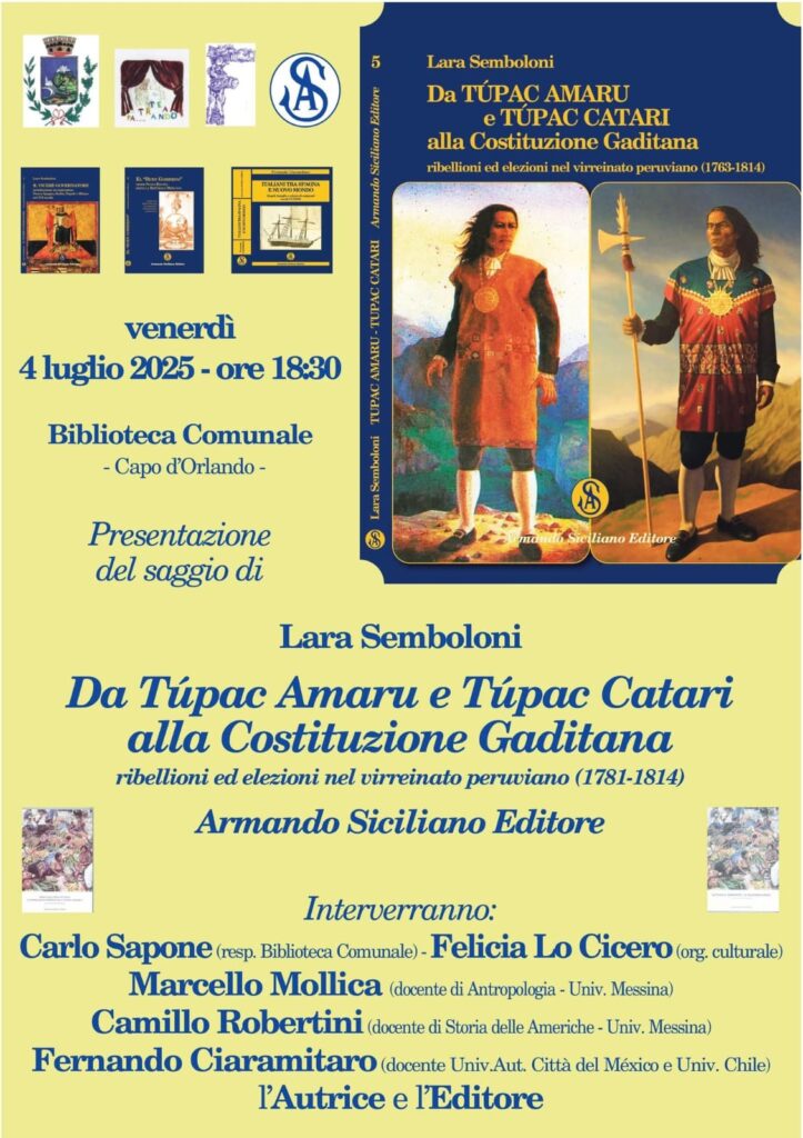 Capo d’Orlando, presentazione saggio “Da Túpac Amaru e Túpac Catari alla Costituzione Gaditana”