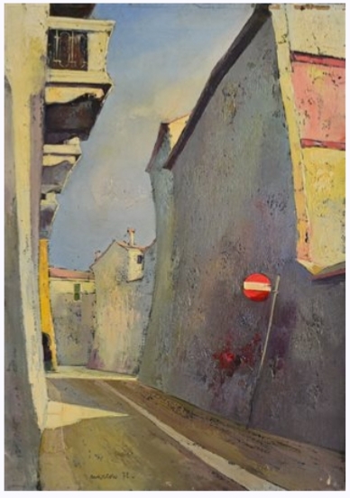 Giorgio Marcon (Venezia, 1924) "Milano Brera, via Madonnina) 1972 - olio su tela, cm 70 x 50