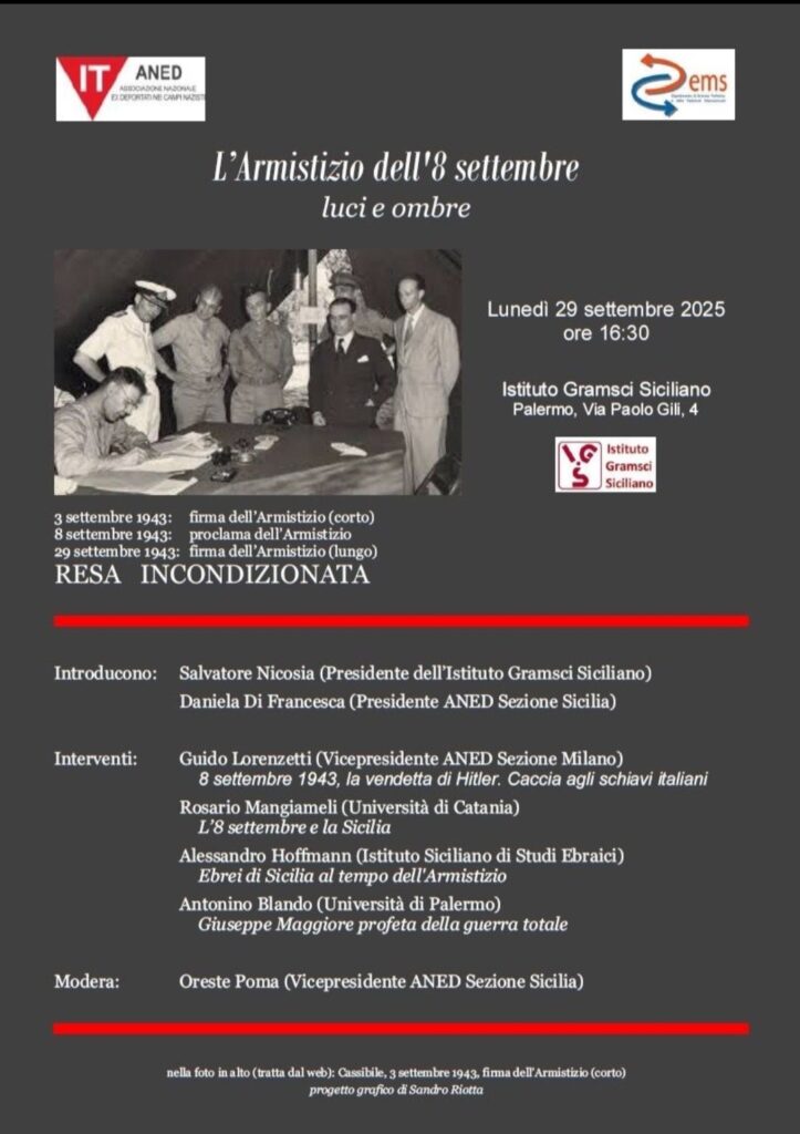 PALERMO. “L’ARMISTIZIO DELL’8 SETTEMBRE. LUCI E OMBRE”