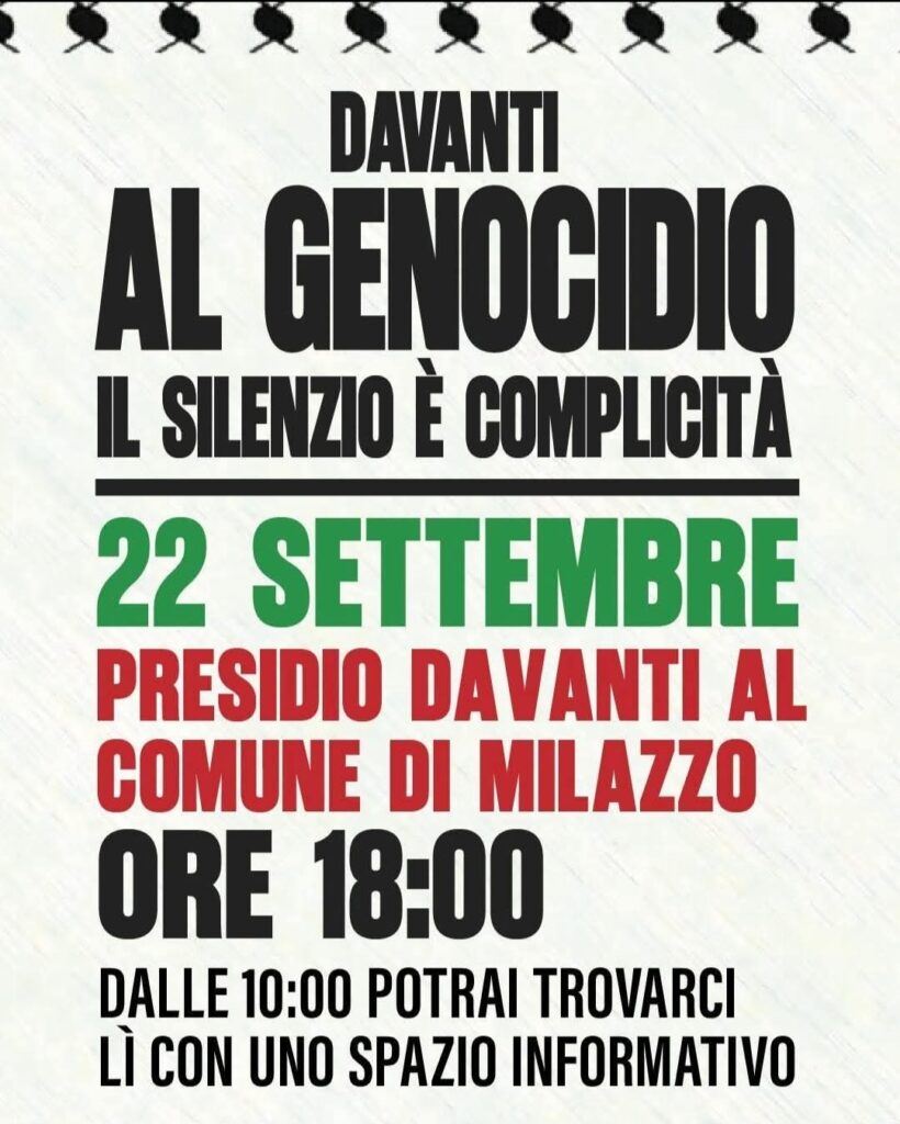 MILAZZO. DAVANTI AL GENOCIDIO IL SILENZIO È COMPLICITÀ