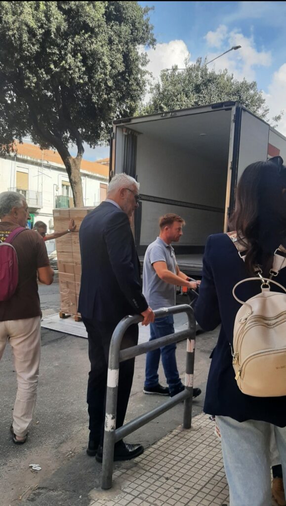 Foto di Lidia Sannino. Il momento del carico del camion con parte dei documenti dell'Archivio. Presente il dottor Capone