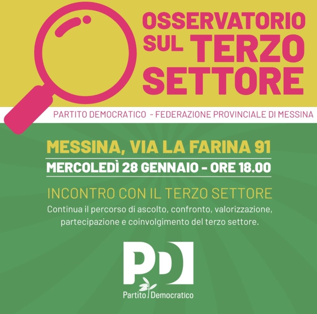 Il Partito Democratico della Provincia di Messina istituisce l’Osservatorio permanente sul Terzo Settore