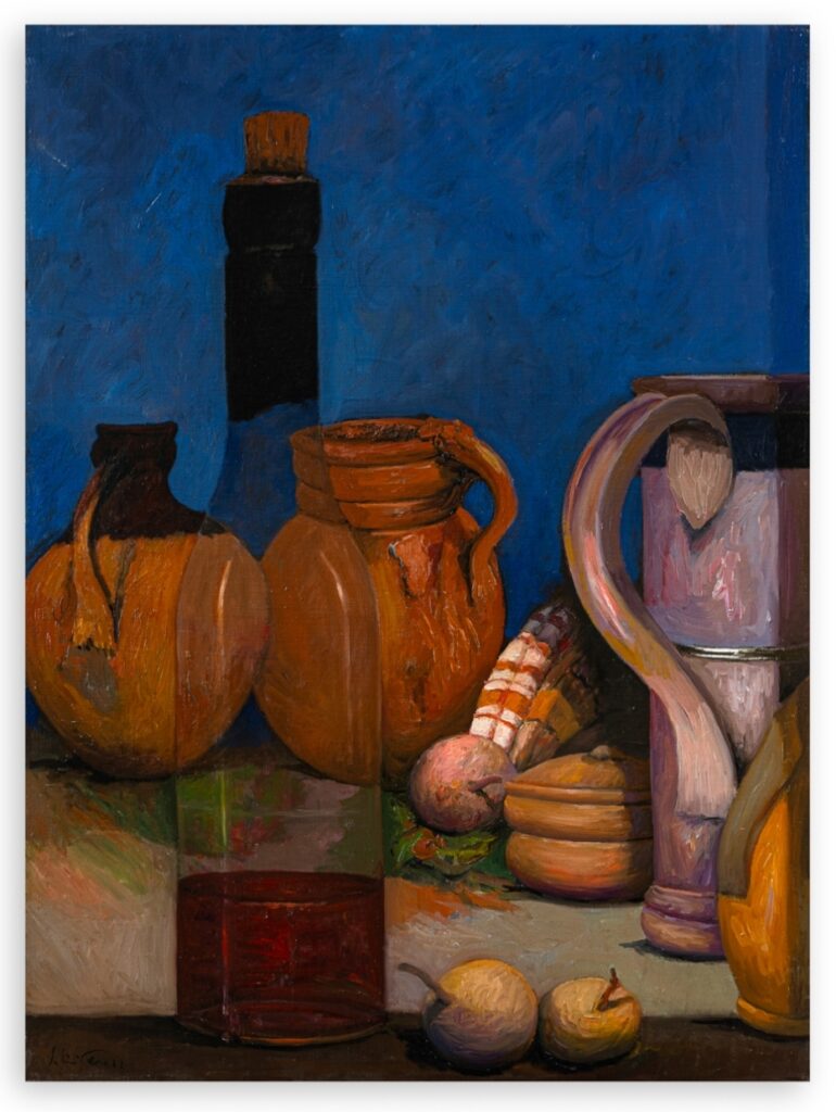 Goffredo Civitarese (1936-2016) "La bottiglia di vetro" olio su tela, cm 80 x 60