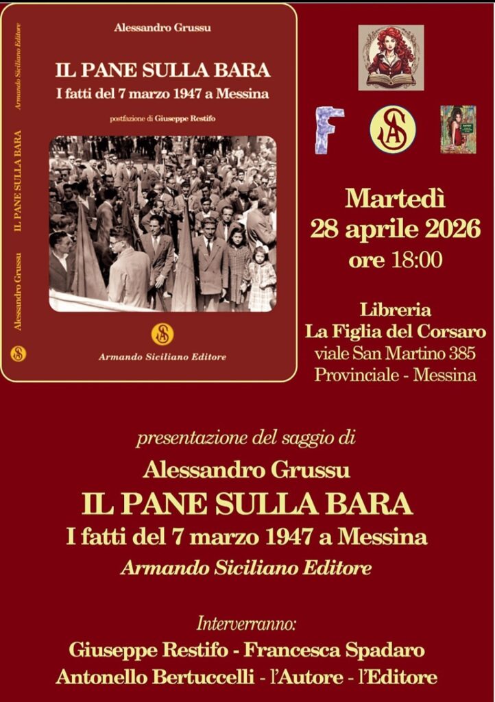 LIBRERIA LA FIGLIA DEL CORSARO, PROVINCIALE – MESSINA: PRESENTAZIONE DEL LIBRO “IL PANE SULLA BARA”